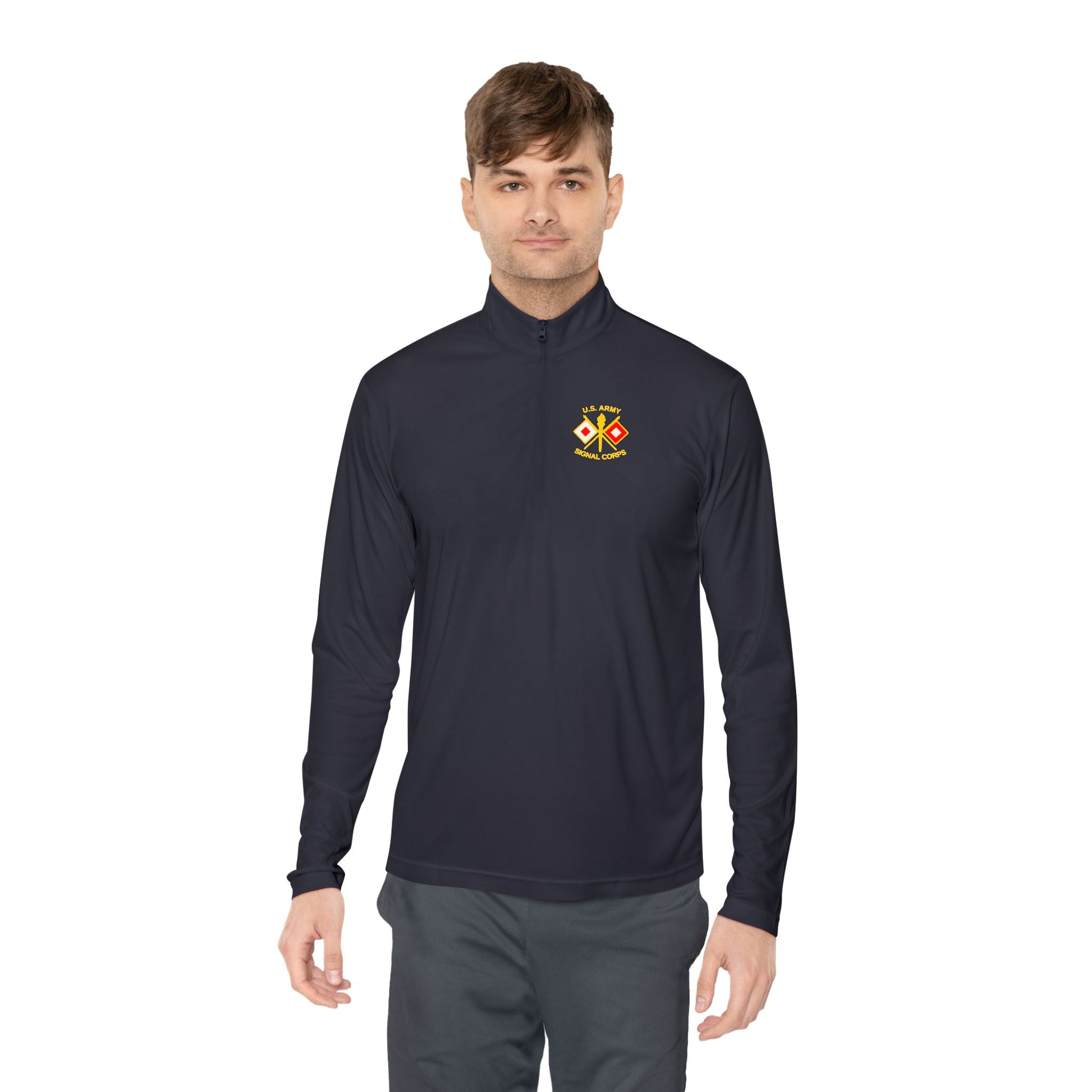 Signal Corps insignia embroidered on a lightweight quarter-zip pullover.