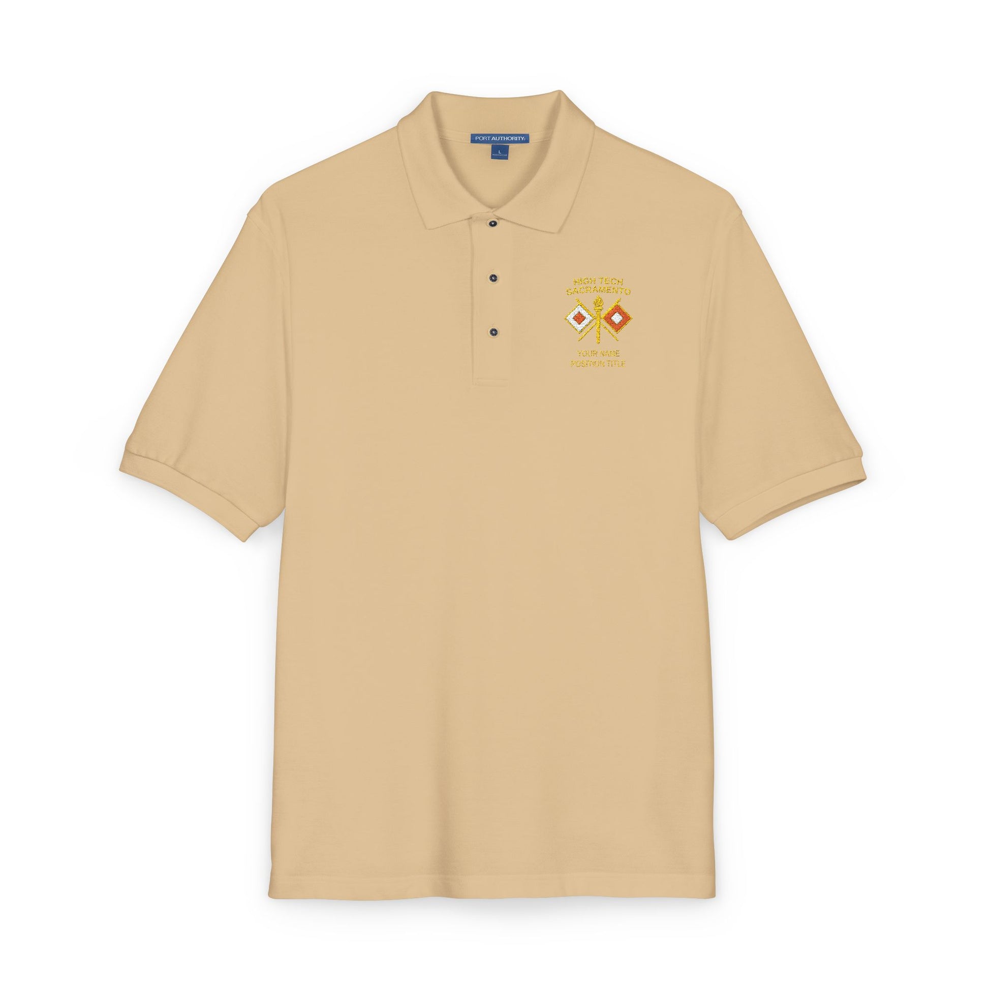 High Tech insignia with your name and title embroidered on a relaxed-fit pique polo.