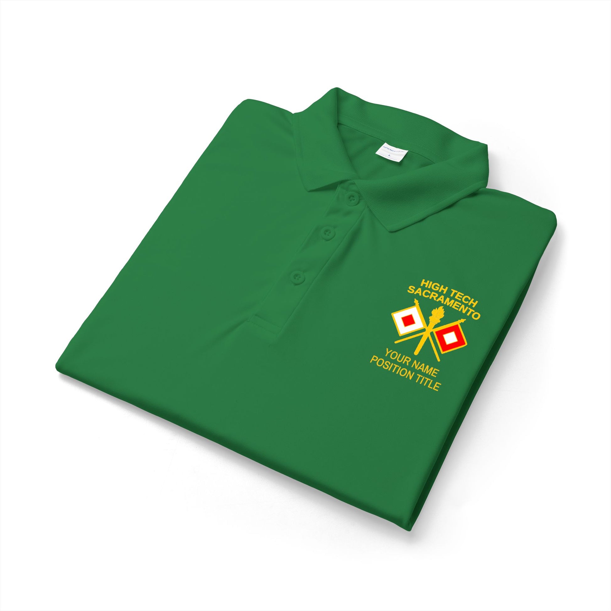 High Tech insignia with your name and title embroidered on a lightweight performance polo.