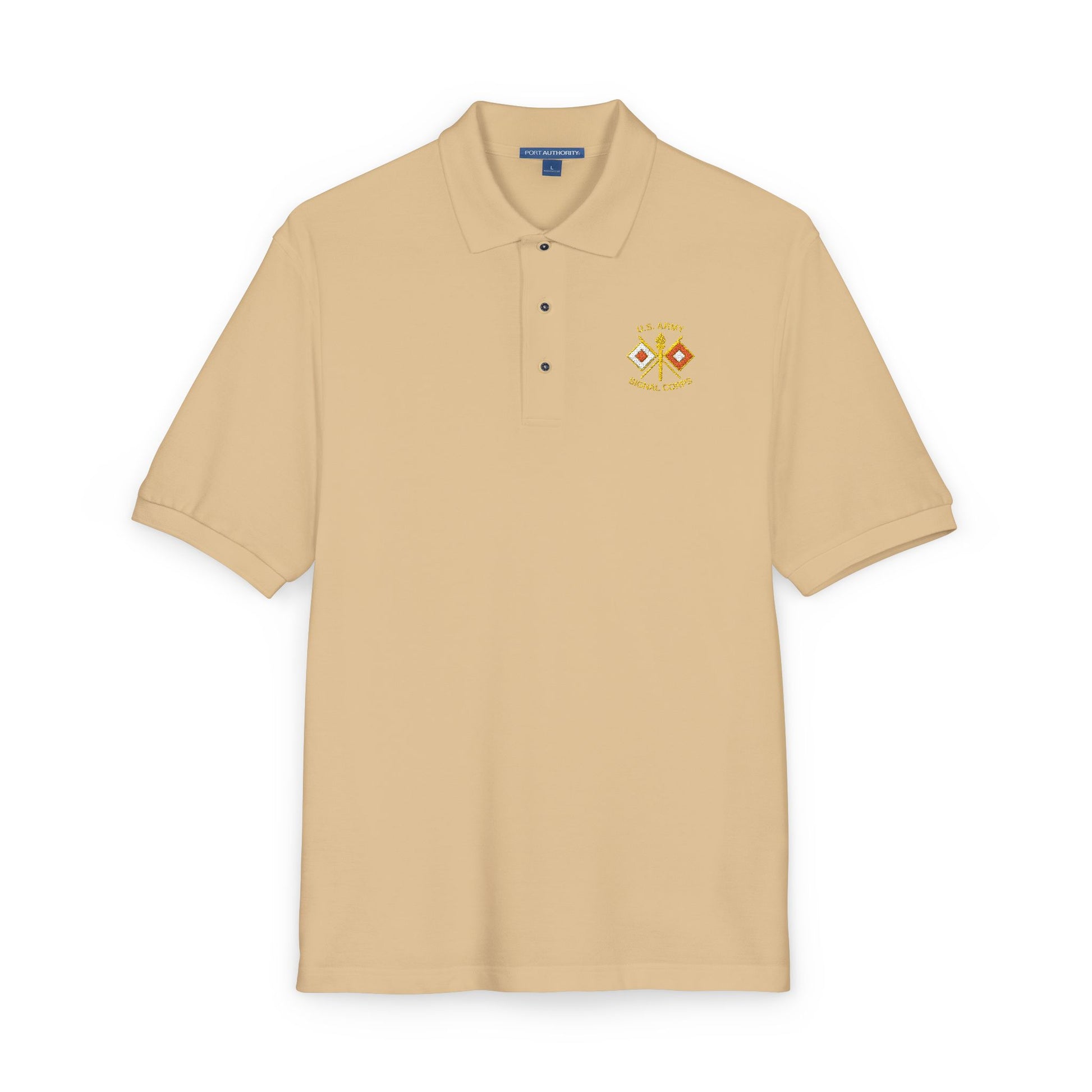 Signal Corps insignia embroidered on a relaxed-fit pique polo.
